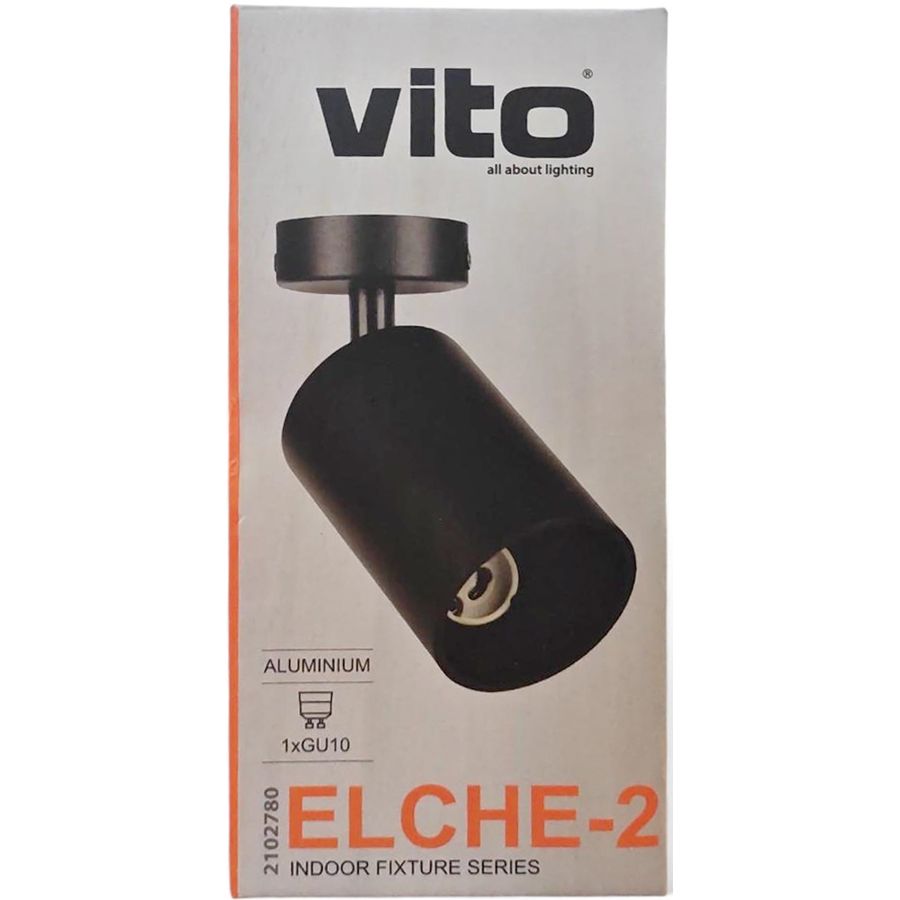 Faretto da soffitto a montaggio superficiale progettato per illuminazione d’accento in ambienti interni. Il modello ELCHE-2 utilizza una lampadina GU10 tipo PAR16 (non inclusa) e offre orientamento regolabile per dirigere il fascio luminoso con precisione.