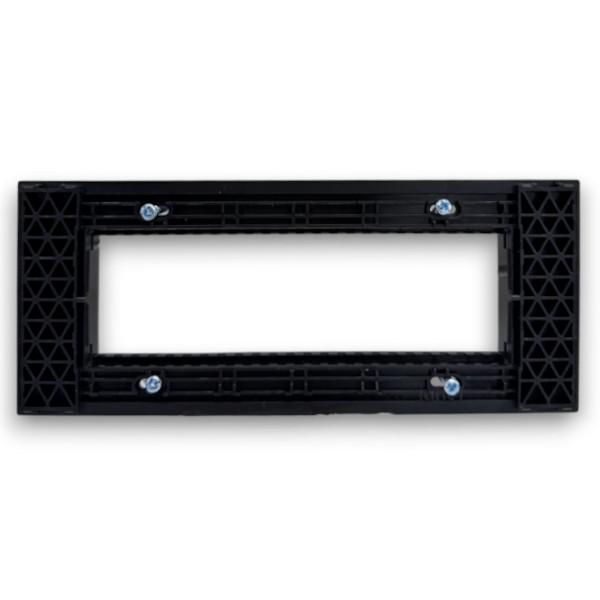 Supporto modulare da incasso a 6 posti progettato per l’installazione di frutti elettrici della serie Zen. Consente un fissaggio solido e preciso dei moduli all’interno delle scatole da incasso, garantendo allineamento corretto, stabilità meccanica e facilità di montaggio.