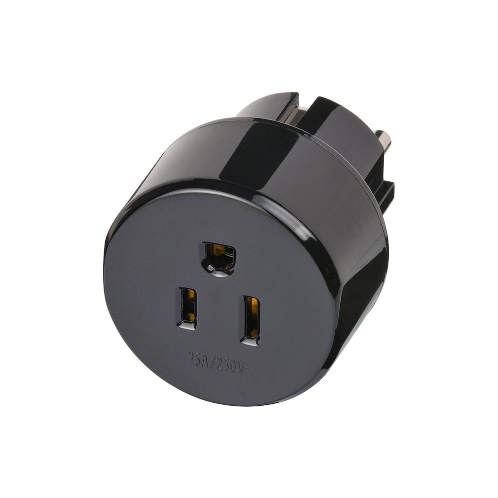 Adapter that allows you to use electrical equipment that uses the US and Japanese grounded outlet system in countries that use an outlet system with grounding, e.g.DE, FR, BE, PL, NL, ES, PT, SE, FI, NO, GR, TR, AT ...