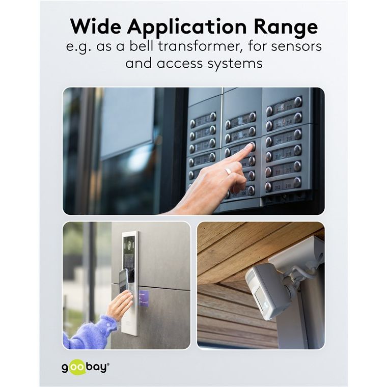 - L'alimentatore da 24 V è adatto per sistemi di controllo come campanelli, illuminazione, riscaldamento o ventilazione collegati in rete e per il funzionamento di sistemi di monitoraggio e allarme