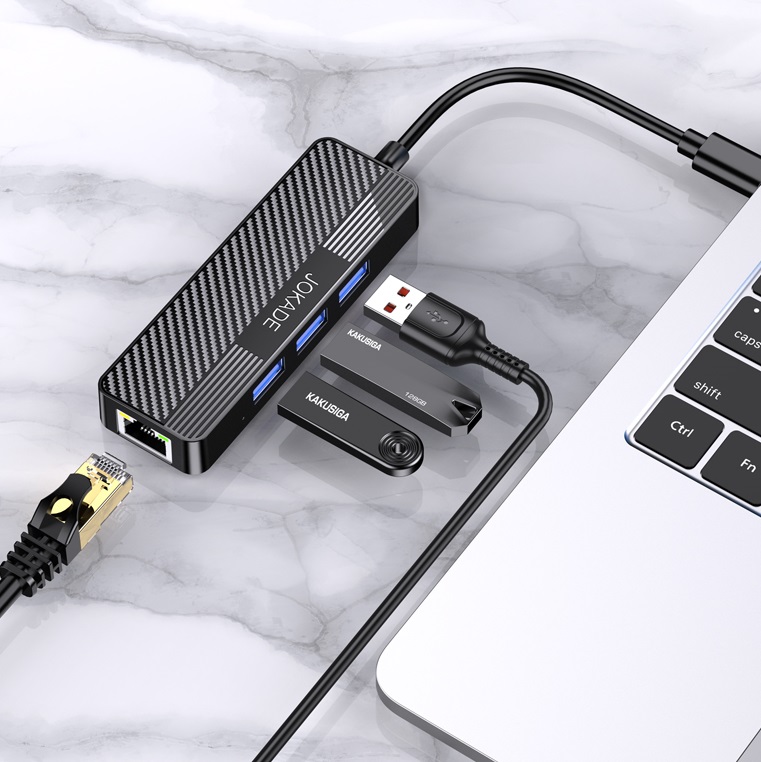 Adattatore hub USB-C 4 in 1 3xUSB 3.0 1xRJ45 Gigabit nero JC009-F
